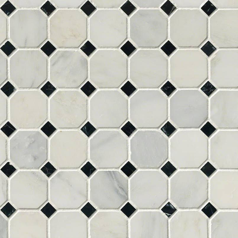 Arabescato Cararra 2" Octagon With Black And White 5/8x5/8 Honed In 12x12 Mesh